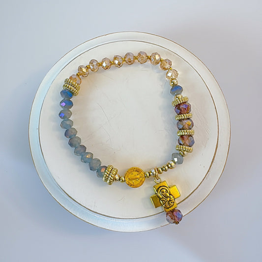 Sky Blue Crystals with Purple Jasper Rosary Bracelet