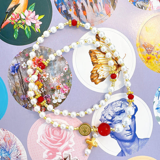 Pearl Beads & Pink Turquoise Rosary Bracelet