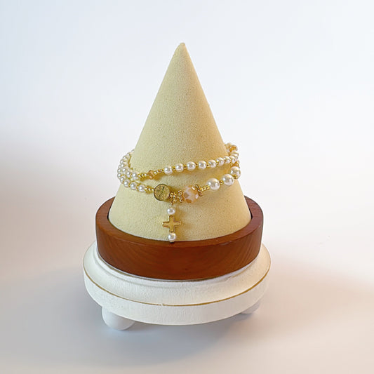Pearl Beads & Faceted Beige Crystal Rosary Bracelet