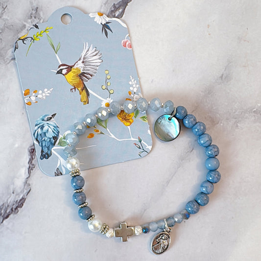 Milky Blue and Crystal AB Two Decades Rosary Bracelet