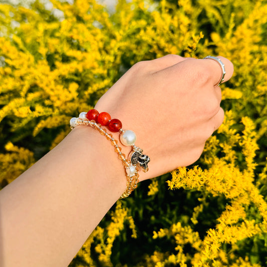 Clear Orange Crystals with Red Agates Rosary Bracelet