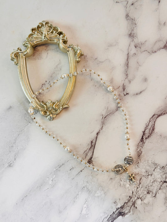 Cream Crystals with Multi Quartz Rosary Bracelet