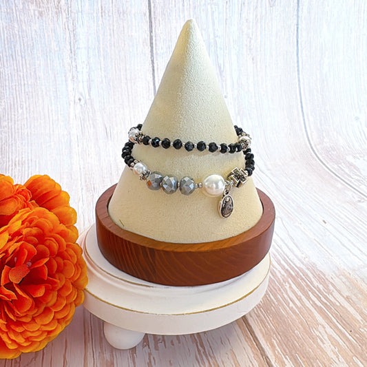 Black Crystal with Grey Opaque Crystal Rosary Bracelet