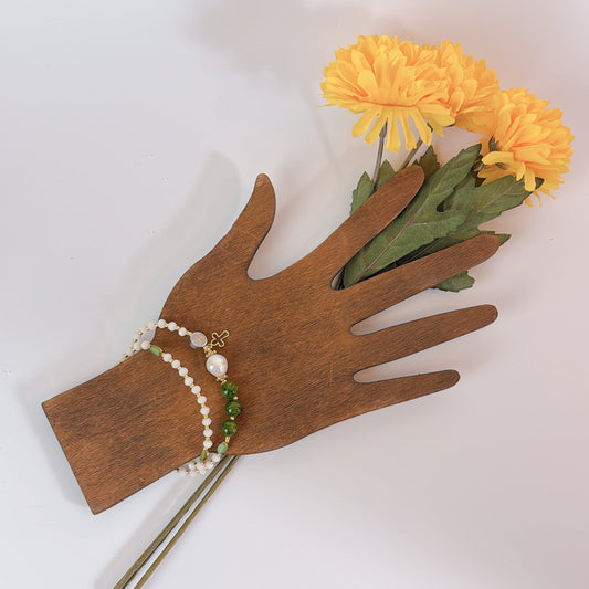 Cream Crystals with Green Quartz Rosary Bracelet