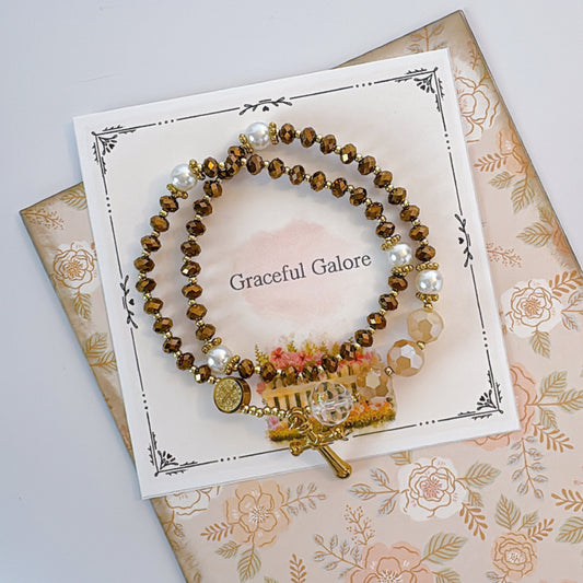 Metallic Brown Crystals Serenity Rosary Bracelet